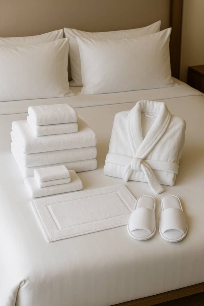 Notre collection comprend une vaste gamme de produits de linge d'hôtel adaptés pour répondre aux besoins uniques de votre établissement. Des draps et taies d'oreiller exquis aux serviettes et peignoirs moelleux, chaque article est soigneusement conçu pour améliorer l'expérience globale des clients. Nous proposons également une variété de linge de table, notamment des nappes et des serviettes, qui ajoutent une touche élégante à vos salles à manger.